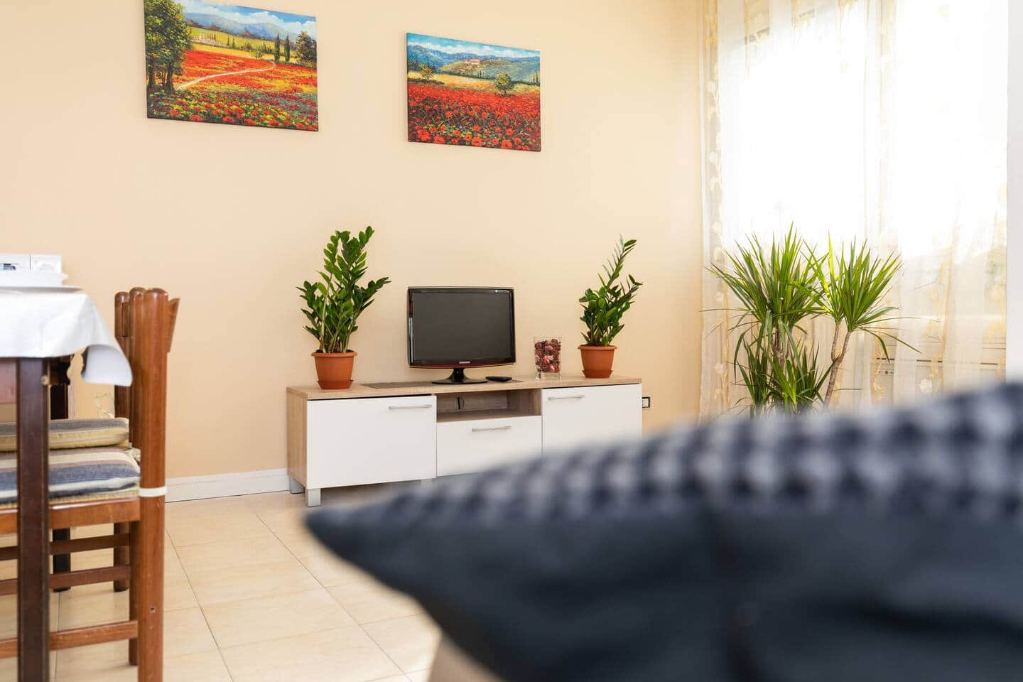Moderne appartement de 60 m² composé d'un grand séjour avec cuisine ouverte, d'une chambre et d'une salle de bain. La cuisine est équipée d'un micro-ondes, d'une bouilloire, d'un grille-pain, d'une machine à café et de divers ustensiles. La salle de bain est équipée d'un bidet, d'un lave-linge, d'une grande cabine de douche, d'un sèche-cheveux, de savon et de shampoing. En plus de tout ce qui précède, il y a aussi des téléviseurs de 32 pouces, une connexion Wi-Fi gratuite dans tout l'appartement, la climatisation et le chauffage.